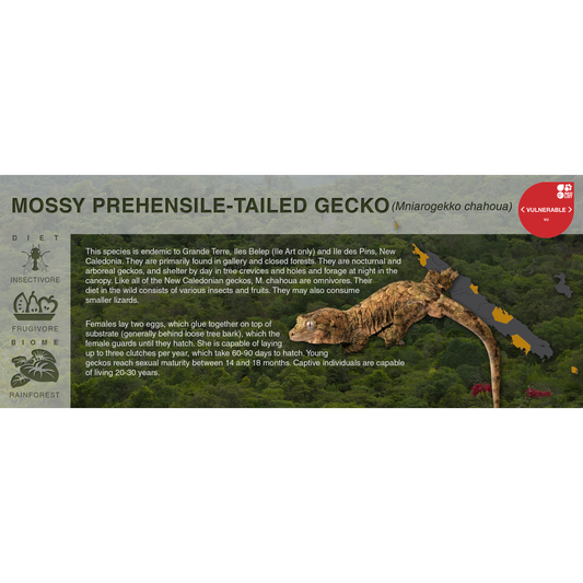Mossy Prehensile-Tailed Gecko (Mniarogekko chahoua) - Black Series Vivarium Label